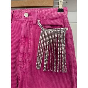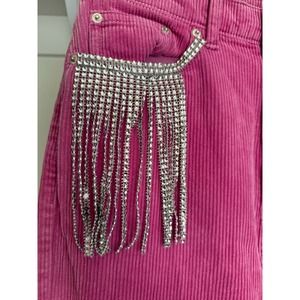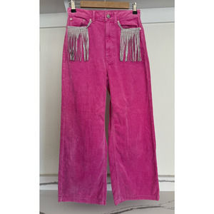 BDG Urban Outfitters Pink Jeans Fringe Rhinestones Diamonds Size 27 Wide-Leg