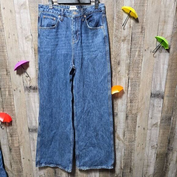 Details: inside adjustable waist, medium wash, Baggy fit, wide leg, little stretch, high Rise