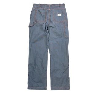 Trendy and durable BDG pants from Urban Outfitters in a size 31. These gray straight-leg pants feature bold red contrast stitching, utility-style pockets, and classic button-zip fly closure. Made in Vietnam from sturdy cotton-blend fabric, these pants offer both comfort and style. Ideal for casual wear, workwear aesthetics, or streetwear looks.