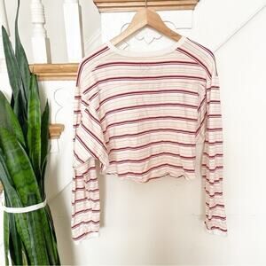 BDG Urban Outfitters Red White Multi Stripe Long Sleeve Crop Top Size Medium