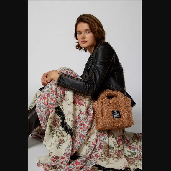 BDG Urban Outfitters Serena Tan Teddy Fleece Mini Tote Crossbody Bag