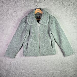 BDG Urban Outfitters Sherpa Teddy Cropped Jacket Sage Green Boxy Fleece Zip S