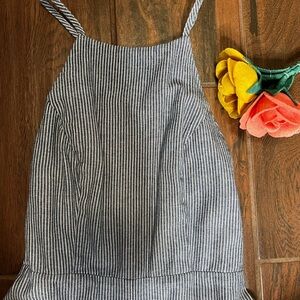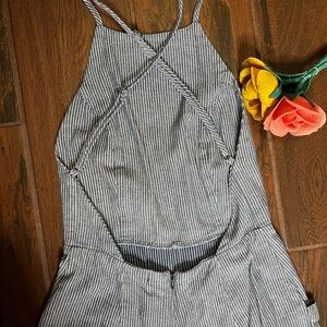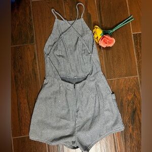 Back showing romper by BDG size small in good used condition with zipper on back and criss cross straps by Urban Outfitters