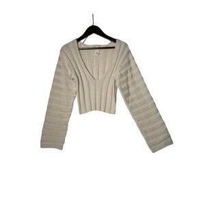 BDG Urban Outfitters Sweater Cream XS V-Neck Ribbed Cropped LS School Casual