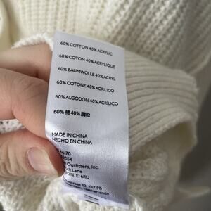 The BDG Urban Outfitters Sweater in ivory is a stylish and versatile addition to any woman's wardrobe. This long-sleeve sweater features an open-knit design with a V-neckline and button accents for added flair. Made from a blend of cotton and acrylic, this lightweight sweater is perfect for casual occasions in the winter, fall, or spring. With its relaxed fit and classic style, this sweater is a must-have for any fashion-savvy woman looking for a comfortable and chic top.