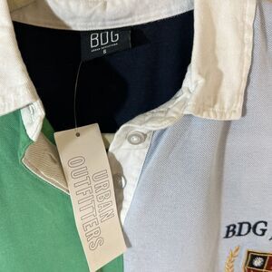 BDG Urban Outfitters Sz Small Polo Shirt Blue Green Color Block Short Sleeve