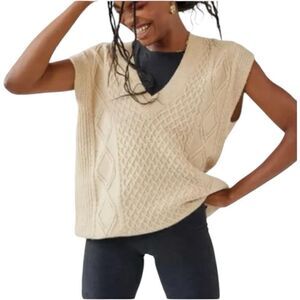 BDG Tan Oatmeal Benjamin Cable Knit Oversized Vest Size S Grandpa Fisherman