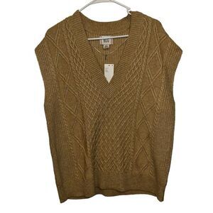BDG Urban Outfitters Tan Benjamin Cable Knit Oversized Vest Size S Grandpa NWT
