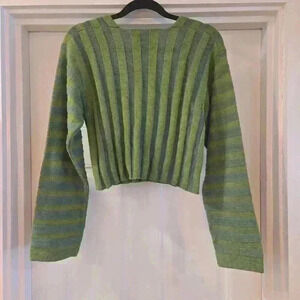 BDG Urban Outfitters V-Neck Striped Ribbed Knit Cropped Sweater Green Size Large