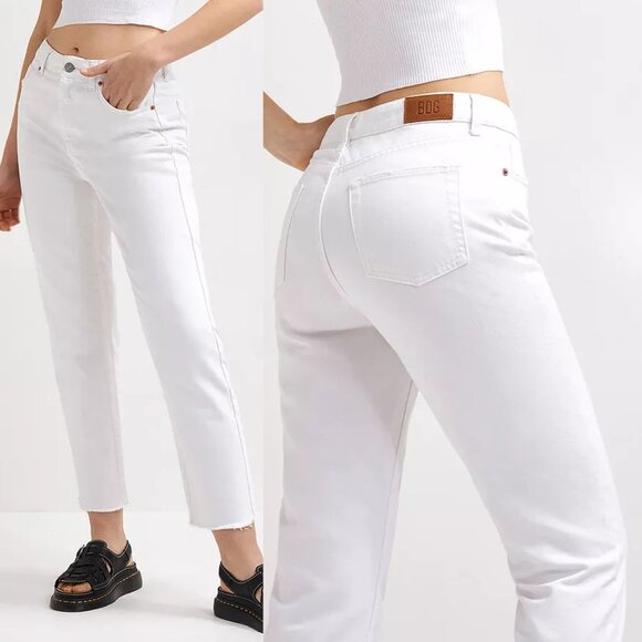 BDG Urban Outfitters White Pax High Rise Straight Leg Jean Fray Hem Size 29 x 32