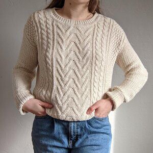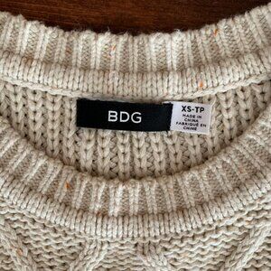 BDG Urban Outfitters Women Cable Knit Sweater XSmall Cream Fisherman Elbow Patch