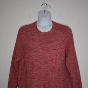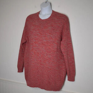 Pre-owned, good condition. No visible holes or stains. Normal signs of wear. Beautiful vibrant knit blend in shades of red and coral. Crew neckline. Drop shoulder long sleeves. Slouchy look. Ribbed neckline, cuffs and hemline. Tunic length. Oversized. Size per tag: L (Large). Knit blend: 59% Cotton/ 41% Acrylic. Size per tag does not guarantee desired fit, please see pictures for measurements.