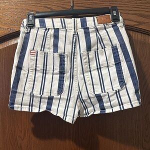 Blue and white striped high rise shorts One little faded spot on back pocket as shown in picture otherwise excellent condition