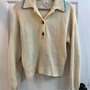 BDG Urban Outfitters women's cream blue waffle knit button up sweater