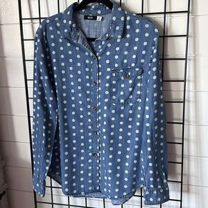 BDG Urban Outfitters Denim Polka Dot LS Button Up Shirt Womens L Blue