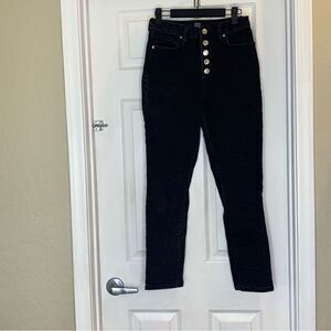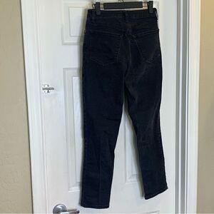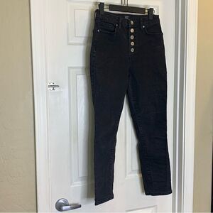 Size 28 Black Button fly Waist 13.5” Rise 11” Leg opening 6.25” Inseam 26”