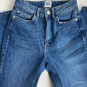 Great used condition BDG Urban Outfitters blue jeans. Zip and button closure. 5 pockets. Straight leg. Wider ankle.