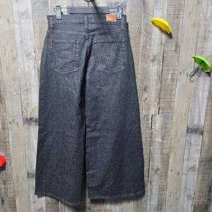 Details: Mid Rise, zip fly, little stretch, a-line wide leg, front and back pockets
