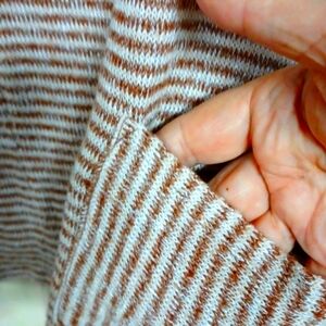 Very cute lightweight cream and brown striped sweater nice soft material, good condition, some pilling, one small area of thread, see pics. Medium but could fit large too I believe