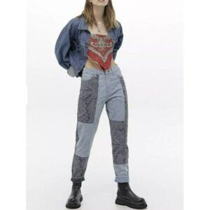 High-rise jeans by BDG with a retro-inspired look. Features patchwork detailing throughout. Cut in a tapered silhouette. Only at Urban Outfitters. Great condition!