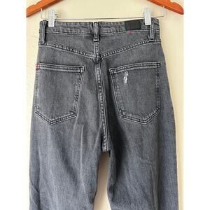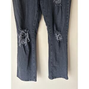 BDG Washed Out Black Stretch High Rise Flare Jeans Size 27. These jeans are in a washed black with distressing throughout. They are high waisted with a slight flare leg. Complete with a zipper and button fly. The measurements are; Waist is about 27", Rise: is about 11", and inseam: is about 31".