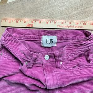 Bold and fun pair of BDG Urban Outfitters corduroy pants in a vibrant magenta pink. Features a flattering high-rise fit with wide leg cut, classic 5-pocket style, and soft corduroy texture. A great statement piece that gives off strong Y2K / retro vibes while still versatile enough for modern streetwear styling.