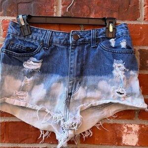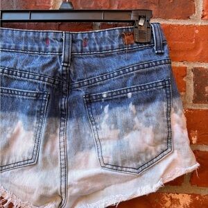 BDG Womens 28 High Rise Blue Acid Wash Bleached Cut Off Cheeky Jeans Shorts