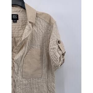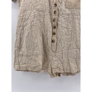 BDG Women’s Beige Seersucker Striped Button-Up Short Sleeve Relaxed Fit Romper SZ M