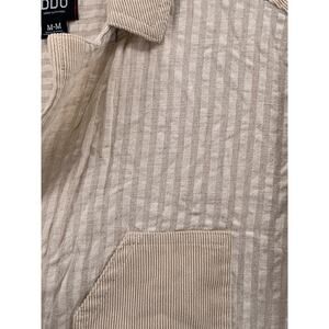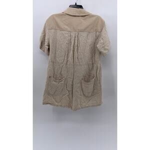 BDG Women’s Beige Seersucker Striped Button-Up Short Sleeve Relaxed Romper SZ M