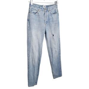 BDG Womens Blue Light Wash Distressed Mom Fit Straight Leg High Rise Jeans Sz 25