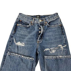 BDG Womens Jeans 24 Blue High Rise Relaxed Straight Button Fly Distressed Denim