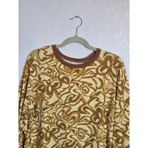 BDG Women’s Long Sleeve Crewneck Shirt Medium Yellow Brown Floral Abstract Retro