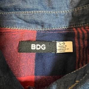 BDG Women's Mixed Media Plaid Flannel Denim Button Up Shirt Size Large Casual