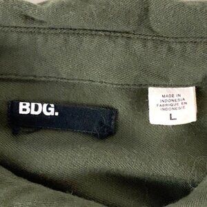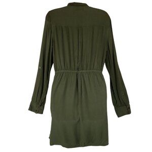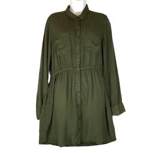 BDG Womens Olive Green Shirt Dress Size Large Rayon Roll Tab Sleeves Pockets