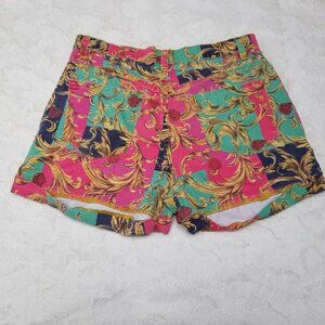 Stay casual and chic with these cuffed shorts, made from 100% cotton and featuring a trendy pink and green paisley print for a playful summer look.