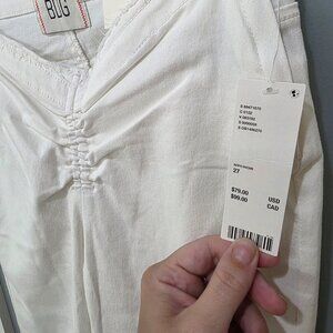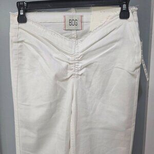 BDG white pants, BDG high rise pants, BDG wide leg pants, BDG women’s size 27, BDG ruched waist pants, BDG white trousers, BDG frayed waistband pants, BDG NWT pants, BDG summer pants, BDG long inseam pants