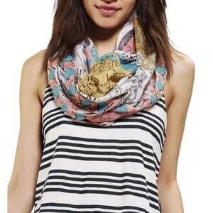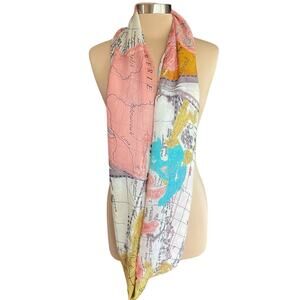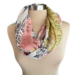 BDG World Map Print Chiffon Infinity Scarf Cream Pink Yellow All-Season Colorful. Gorgeous map graphic on 100% viscose. Drapes softly. Lightweight. In excellent condition.