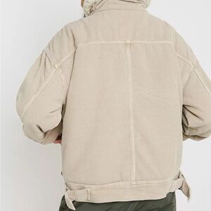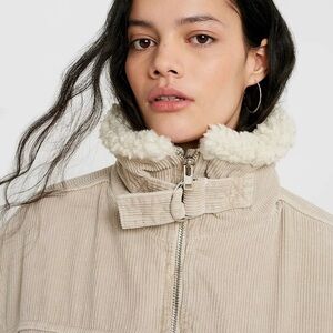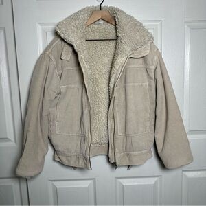 BDG XS Cord Borg Beige Barn Coat Jacket Corduroy Relaxed Sherpa Shearling Chore