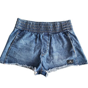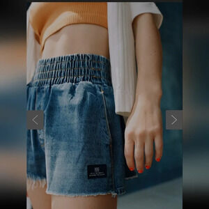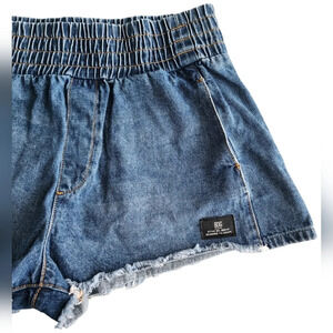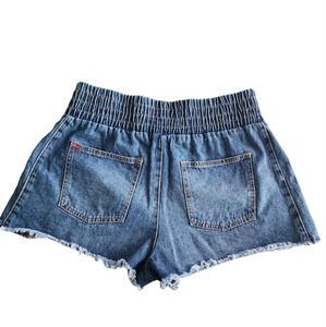 A pair of boxer-inspired denim shorts from BDG. High-rise. Relaxed fit. Complete with an elastic waistband and distressed hems. UO exclusive.