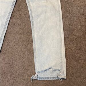 These BDG jeans from Urban Outfitters feature a classic straight leg cut in a versatile blue color. Trendy frayed hem make them perfect for everyday wear. The regular fit offers comfort and style, making them an ideal choice for casual outings. With their timeless design, these jeans are a wardrobe staple. 30” waist and 32” length.