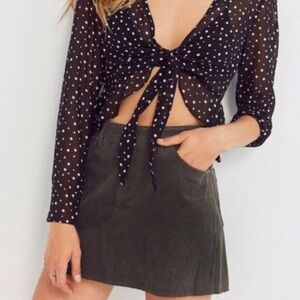 BDG • frayed hem corduroy mini skirt dark green raw hem Urban Outfitters Y2K