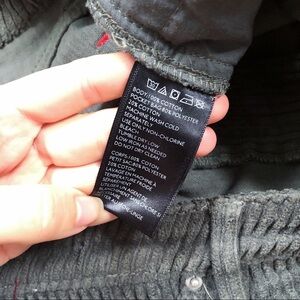 Fabulous wide wale cord mini skirt by BDG (Urban Outfitters). Classic low rise mini style in “carbon”, a grayish olive green cotton corduroy with a raw frayed hem. Very Y2K vintage style. Waist 36“, length 14“. Size L, excellent preowned condition.