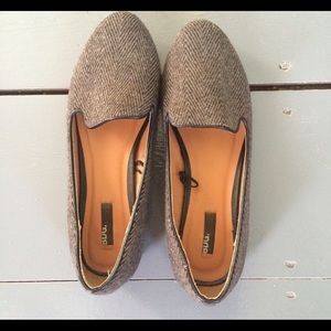 These BDG loafers are in like new condition, and their classic style makes them a must have. Black and brown herringbone fabric on the top with a solid rubber sole and 1/2 in. heel on the bottom.