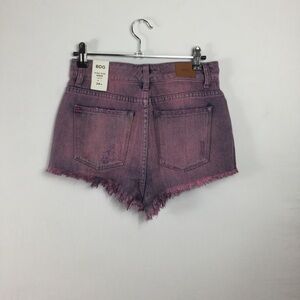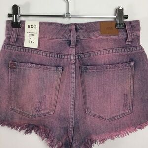 BDG boho tribal print high-rise Studded Cheeky denim Jean Shorts with one studded pocket five pocket design raw edge hem urban outfitters waist 13 1/2 inches rise 12 inches length 10 1/2 inches size 26 Nwt