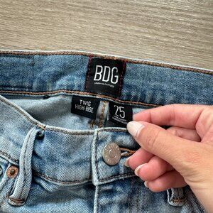BDG twig high rise jeans, light wash. well worn but no damage or stains! very soft, thinner denim