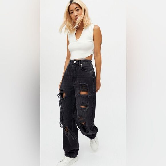 BDG high rise baggy jeans black destroyed distressed 30 petite new