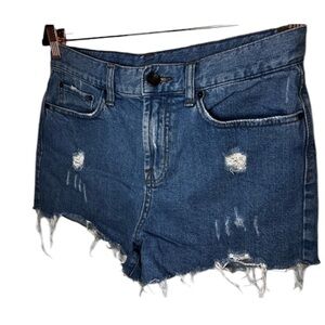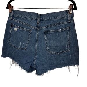 BDG denim shorts, high rise girlfriend shorts, Urban Outfitters denim, distressed jean shorts, raw hem denim shorts, women’s size 29 shorts