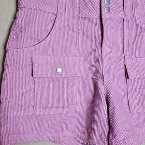 Stylish and comfortable pink corduroy shorts perfect for casual outings. Features convenient front pockets and a button closure for a secure fit. BDG 4 Light Purple Corduroy High Waist Cargo Shorts in excellent condition, chill retro 70s style