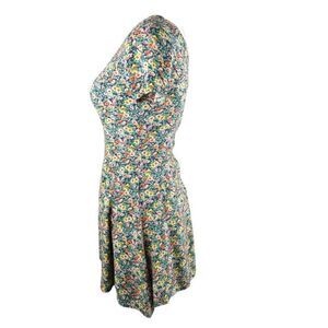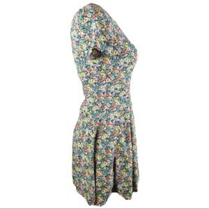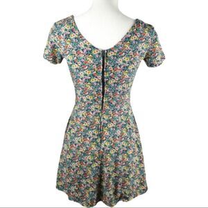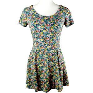 B Darlin pre-owned floral fit & flare fit skater dress. Short sleeve navy blue with colorful floral pattern. Zips in back. Juniors size 1/2