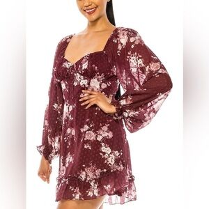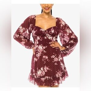 B.Darlin Juniors Emma Womens Chiffon Swiss Dot Fit & Flare Dress